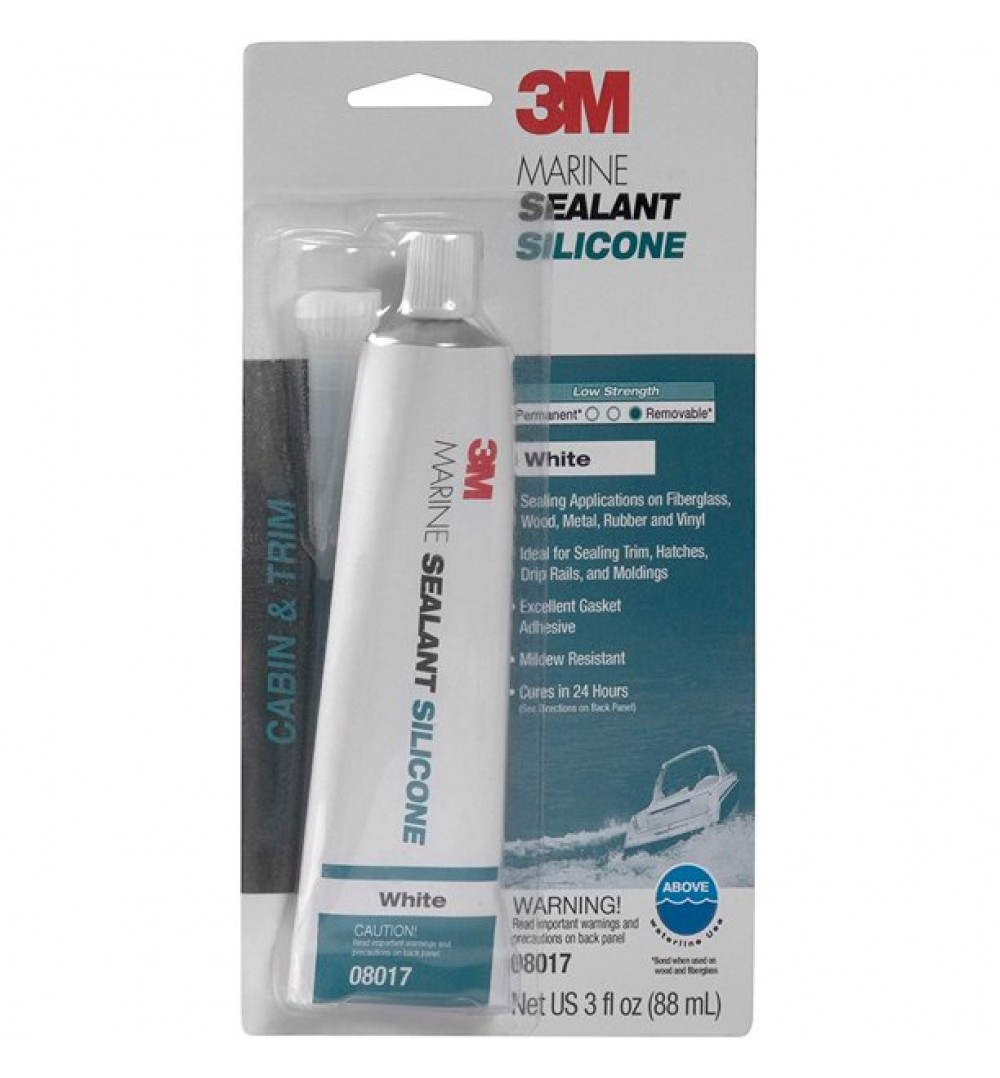 3M Marine Grade Silicone Sealant, 08017, 3 oz Tube, White